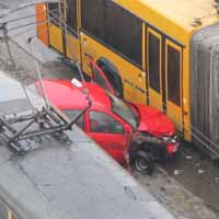 Ведь ни трамвай, ни автобус не имеют страховку ОСАГО, а у такси нет страхового полиса КАСКО. Автобус тоже получил серьезные повреждения передней части.