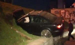 В Киеве автомобиль слетел с дороги и вонзился в газон