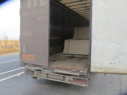 10 октября 2013 года на трассе Санкт-Петербург - Москва, в близи г. Вышней Волочёк, тягач с полуприцепом перевозил плиты ДСП, которые не были соответствующим образом закреплены.