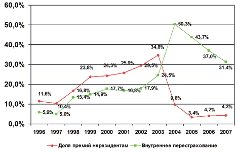 Тенденции украинского рынка перестрахования 1996-2007 гг.