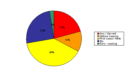 По итогам 2005 г. количество машин по подписанным лизинговым контрактам на 05.12.05 составляет 788 автомобилей. Общий парк автомобилей нашей компании составляет более 1800 автомобилей по подписанным лизинговым контрактам, с учётом заказанных автомобилей.