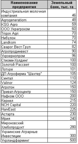 В настоящее время, по данным АПК-Информ, в Украине насчитывается 27 агрохолдингов. Общий земельный банк, находящийся в пользовании агрохолдингов, составляет 3 млн. 805 тыс. га, при том что два года назад он насчитывал около 3 млн. га.