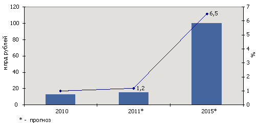 График 2. Объемы рынка страхования МСБ значительно вырастут к 2015 году