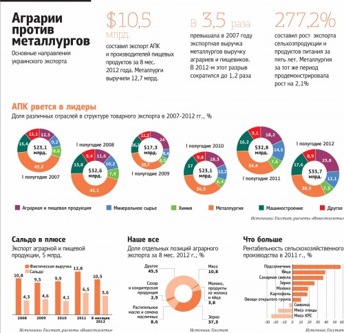 Украина, стабильно входящая в десятку крупнейших экспортеров продукции агросектора, вполне может получить свой кусок пирога. Особенно если учесть, что всего за пять лет экспорт сельхозпродукции и продуктов питания вырос вдвое. Кстати, металлургия за этот же период потеряла примерно треть экспортных объемов. Если в первом полугодии 2008-го практически 50% экспортной выручки приносила именно металлургия, а на долю пищевиков и аграриев приходилось немногим больше 15%, то сейчас паритет валютных поступлений практически сравнялся.