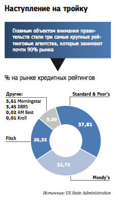 Главным объектом внимания прави- тельств стали три самые крупные рей- тинговые агентства, которые занимают почти 90% рынка