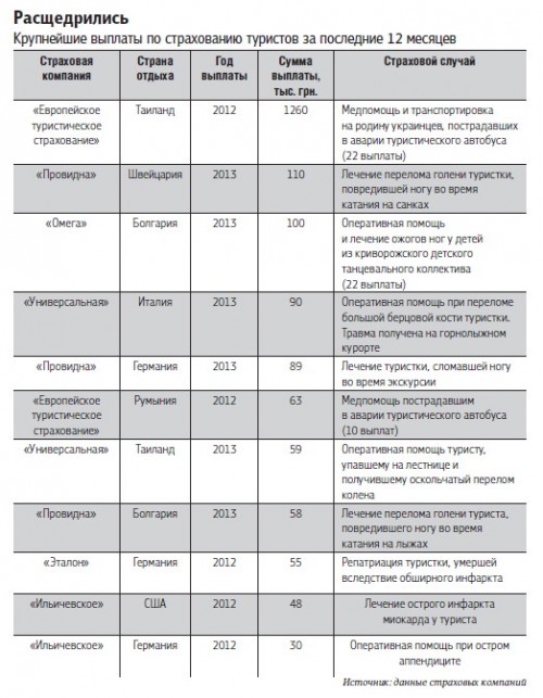 Основная проблема массовой страховой защиты украинцев за рубежом заключается в том, что большинство полисов продаются в комплексе с турпутевками. Туроператорам, чтобы снизить стоимость поездки, выгодно предлагать только недорогие медицинские полисы с минимальным набором рисков. Такая защита позволяет получить медпомощь в стандартных ситуациях - травмы в отелях и на экскурсиях, острые вирусные заболевания, отравления. Все, что выходит за их рамки, включая народные волнения, компенсации не подлежит. «Сейчас лучшим решением для туристов будет посещение офиса страховщика, чтобы на месте определить, как можно себя защитить там, куда они едут», - рекомендует президент ЛСОУ Наталья Гудыма. По ее словам, в 2013 году отмечается рост таких обращений, но массового спроса на покупку полисов в офисах страховщиков нет.