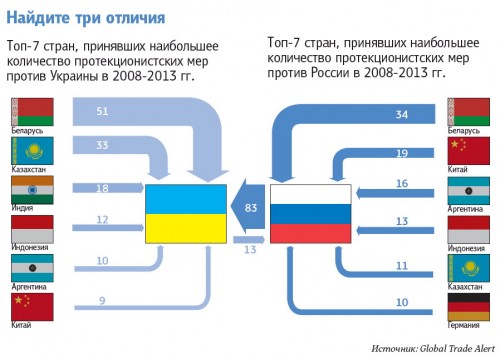 Ни украинско-турецкие консультации, ни обсуждение этого вопроса на заседании в ВТО не смогли заставить Анкару отказаться от своего решения. 9 июля о своих претензиях заявила и Россия. Москва оценила ущерб в $36,1 млн. ежегодно, исходя из объема импорта российских авто в Украину в 2012 году на общую сумму $327,6 млн. Компенсировать эти потери северный сосед также намерен путем взимания дополнительных пошлин. В частности, 0,1 евро за килограмм украинского шоколада пополнят ежегодные поступления в российский бюджет на $13,4 млн. Также Москва планирует ввести 15%-ную пошлину на ввоз листового стекла, что даст еще $3,1 млн. Но больше всего от заградительных мер Москвы пострадают украинские экспортеры угля, для которых пошлина в 54% означает потери минимум $19,5 млн. ежегодно.