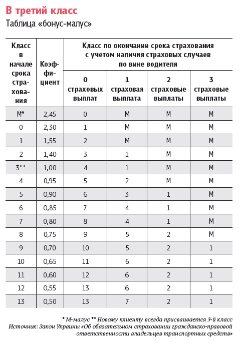 Система «бонус-малус» была задумана как средство поощрения добросовестных водителей и наказания тех, кто часто попадает в аварии. Она работает в странах ЕС и России. В Украине «бонус-малус» закреплена Законом «Об обязательном страховании гражданско-правовой ответственности владельцев транспортных средств», согласно которому при заключении договора автогражданки собственнику автомобиля присваивается специальный класс. Он зависит от частоты страховых случаев, возникших по вине водителя. В зависимости от класса к базовой стоимости страховки применяется коэффициент — понижающий или повышающий. Так, к примеру, для водителя, который в течение года совершает несколько ДТП, стоимость страховки может повыситься почти в 2,5 раза. Для тех, кто ездит без аварий, цена страховки снижается на 5% каждый год и через 10 лет может уменьшиться вдвое. «Для потенциальных нарушителей за рулем сдерживающим фактором является уже само знание того, что страховой полис подорожает в два раза, если аварии происходят по их вине», — уверен директор департамента андеррайтинга и методологии СК «Нова» Владислав Борец.