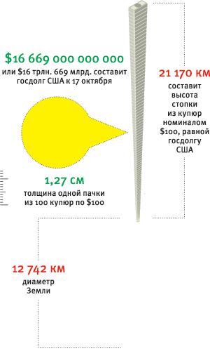 Но это еще не все "сюрпризы" с Американского континента для мировой экономики. В США приближается и еще одно время "Ч". Размер госдолга там, как ожидается, достигнет установленного потолка в 16 трлн. 669 млрд. долларов к 17 октября, что уже на следующей неделе. И если потолок в законном порядке не будет повышен до этой даты, Штатам придется объявлять так называемый технический дефолт. Это когда государство неспособно расплачиваться сполна по своим долгам. А с учетом того что конгрессмены и по бюджету еще не договорились, ситуация выглядит весьма серьезной. И не только для США.