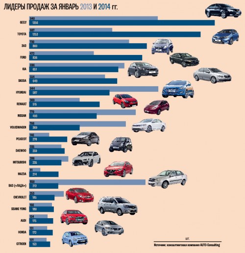 10 950 новых легковых автомобилей было продано в Украине в январе 2014 г.
