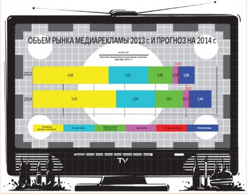 За 2013 г. объем рынка рекламы в прессе составил 2,56 млрд грн, свидетельствуют данные Всеукраинской рекламной коалиции (ВРК). «Хорошо, если удержим ситуацию на уровне прошлого года. Однако, скорее всего, будет минус 5?15?% к 2013 г.», — прогнозирует Бойко. Эксперты надеются, что рекламодатели активизируются осенью.
