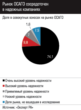 Но много это или мало? Если ориентироваться на число компаний в целом - существенно. Однако если посмотреть на долю рынка, занятую проблемными компаниями, то ситуация уже не представляется драматической. По оценкам "Эксперт РА", на страховщиков с низким уровнем надежности приходится всего 1,6% рынка ОСАГО. В основном это небольшие компании со значительными факторами риска. При этом прогнозируемый объем обязательств по ОСАГО для них составит не более 350 млн рублей, что не является критическим показателем для фонда выплат РСА.