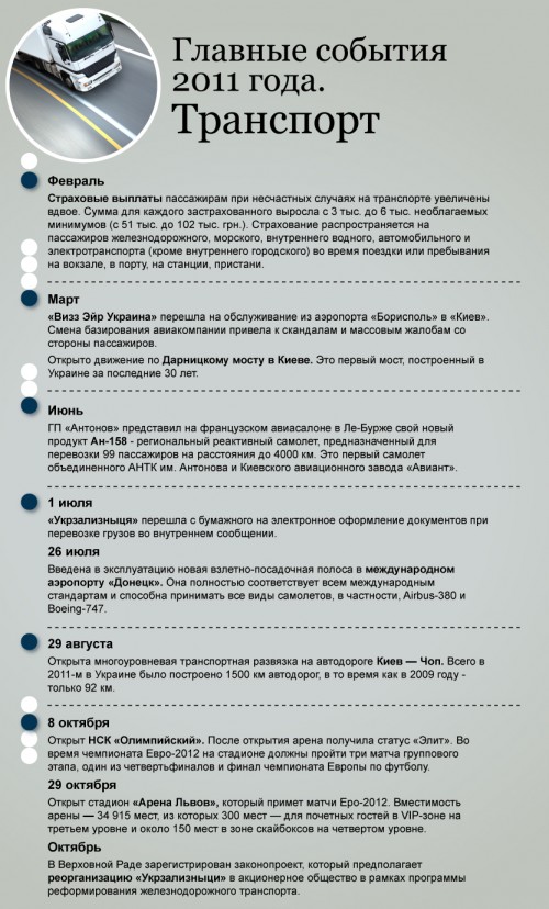 А в октябре был зарегистрирован законопроект о реорганизации "Укрзализныци" в акционерное общество, который стал одним из самых обсуждаемых во втором полугодии 2011 года.