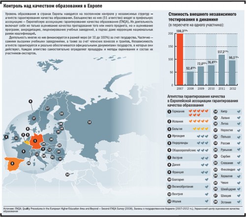 Наконец, чтобы проверять качество этого обучения, в странах Болонского процесса действуют независимые агентства гарантирования качества высшего образования, которые оценивают вузы или их отдельные предметы и программы, а также проводят сравнительный анализ предметов и программ разных вузов. В Украине нет ни одного такого агентства.