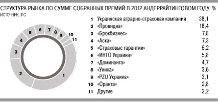 Новые правила работы оказались сложно выполнимыми для многих участников рынка. Членами Аграрного страхового пула с момента его создания в начале ноября остаются всего четыре компании: "Украинская аграрно-страховая компания", "Доминанта", "Брокбизнес" и "Страховые гарантии". И хотя суммарно они заняли в 2012 году 56,8% от рынка объемом 130,4 млн грн, до конца календарного 2012 года они успели застраховать по новым условиям всего 3,5 тыс. га посевов озимой пшеницы (0,7% засеянных территорий). По этим договорам страховщики получили премии на 173,6 тыс. грн. Из них 86,8 тыс. грн (50% суммы) правительство должно было вернуть аграриям из госбюджета еще в 2012 году, позже этот срок был перенесен на конец I квартала. Но, как сообщил "Ъ" источник на страховом рынке, компании до сих пор не получили субсидии. При этом лицензию на осуществление аграрного страхования с господдержкой получили суммарно уже 9 компаний, в том числе "Аска", "Статус", "Финист", УПСК и "PZU Украина" (общая доля порядка 67%).