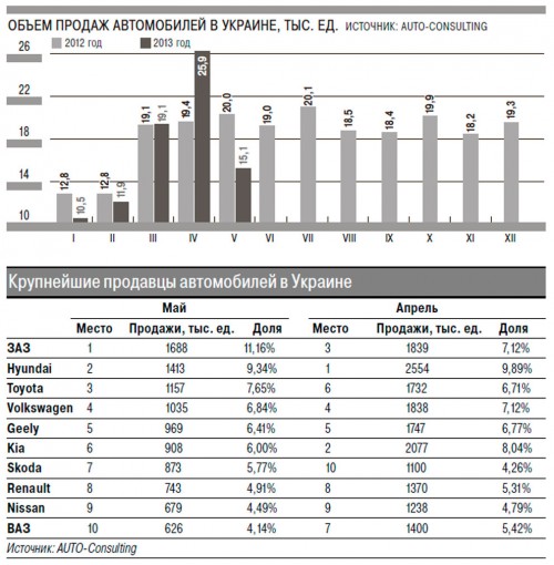 При этом ЗАЗ, ставший впервые за многие годы лидером рынка, а также Skoda смогли пережить этот месяц с меньшими потерями (подробнее см. таблицу). Гендиректор AUTO-Consulting Олег Омельницкий говорит, что ценовое предложение на украинские автомобили стало более привлекательным после того, как у импортеров закончились запасы машин по старым ценам. Гендиректор дистрибуторской компании "АвтоЗАЗ-сервис" Андрей Залуцкий отмечает, что его компания объявила о скидках практически на весь модельный ряд автомобилей 2012 и 2013 года производства. По его словам, скидки на некоторые машины достигали 7 тыс. грн. Следует отметить, что в конце марта председатель профкома ЗАЗа Николай Палиенко сообщал, что на заводе скопилось порядка 5 тыс. автомобилей, которые не удается продать.