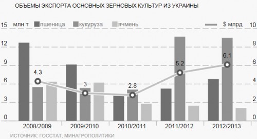 В новом сезоне Украина рассчитывает не только на самый крупный урожай зерна, но и на рекордный его экспорт. В пятницу министр аграрной политики и продовольствия Николай Присяжнюк сообщил, что в 2013/2014 маркетинговом году планируется собрать на четверть больше зерновых культур, что позволит увеличить их поставки на внешние рынки более чем на 10%. По мнению экспертов, реализация заявленных планов позволит участникам зернового рынка Украины компенсировать отрицательные последствия падения цен на зерно в мире.
