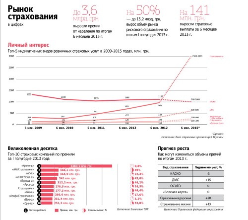 До кризиса драйвером страхового рынка было страхование автомобилей. Например, только по итогам первого полугодия 2009 года объем КАСКО составил более 1,3 млрд. грн. — вчетверо больше объемов премий по страхованию жизни и в 10 раз — по добровольному медицинскому страхованию физлиц. Основная причина «популярности» КАСКО — докризисный рост продаж новых авто, большинство из которых приобретались в кредит. «Залоговые авто сформировали львиную долю страховых портфелей. Добровольно украинцы страховали их куда менее охотно», — вспоминает директор департамента маркет-менеджмента СК «Allianz Украина» Диана Коченкова.