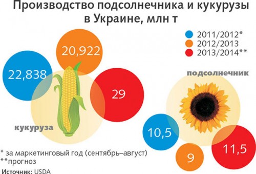 Минсельхоз США (USDA) также не снижает прогнозируемые показатели украинского экспорта "проблемных" культур, а по подсолнечнику даже повысил их. Ожидается, что наша страна отгрузит на мировые рынки в 2013–2014 маркетинговом году 18 млн т кукурузы и 0,3 млн т семечки (ранее озвучивалась цифра в 0,15 млн т).