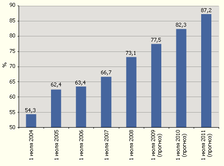 Пока же на 1 июля 2008 года нижняя граница годового коэффициента убыточности в целом по рынку ОСАГО была равна 73,1%, с учетом РВД и отчислений в фонд РСА – 96,1%. Однако по отдельным тарифным территориям и типам транспортных средств нижняя граница годового коэффициента убыточности уже на 1 июля 2008 года превысила критический уровень – 77%. По городам с Кт=1 данный показатель составил 79,4%, по городам с Кт=1,3 – 82,7%, по населенным пунктам с Кт=0,5 – 88,0%, по автобусам – 88,1%, по трамваям – 129,0%, по троллейбусам – 153,1%, по такси – 156,9%!