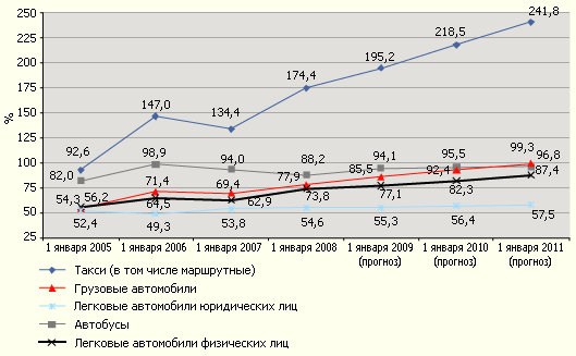 Общественный транспорт, такси и грузовые автомобили характеризуются очень высокими показателями убыточности. Особенно неблагоприятная ситуация с точки зрения убыточности сложилась в страховании троллейбусов и такси, по которым годовые коэффициенты убыточности на 1 января 2008 года превысили 170%.