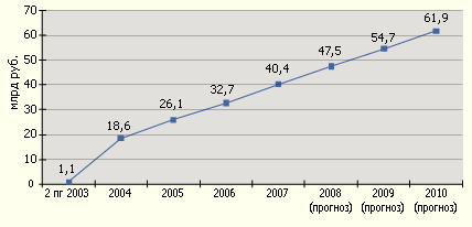 Объем рынка ОСАГО за анализируемый период (с июля 2003 года по март 2008 года) достиг 282,0 млрд руб. премии (с января по март 2008 года совокупная страховая премия по заключенным договорам составила 16,9 млрд руб.).