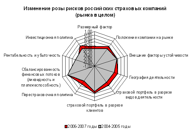 Рейтинговое агентство «Эксперт РА» проанализировало карту рисков российских страховых компаний на основе данных за два периода: 2004-2005 годы и 2006-2007 годы, – и выявило, что развитие российского страхового рынка привело к смене природы рисков финансовой надежности его игроков.