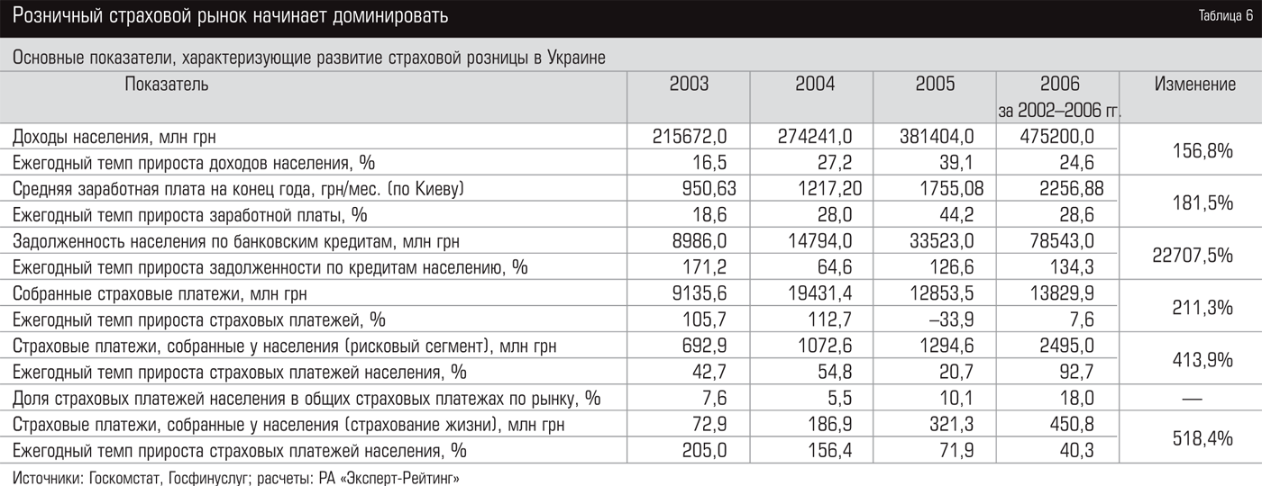 По данным Госфинуслуг, общий объем бизнеса на рынке страховых услуг для населения в 2006 году составлял около трех миллиардов гривен. В ближайшее время популярность страховых услуг у граждан будет вызвана двумя факторами: сохранением высоких темпов роста банковских кредитов физлицам (они, как правило, требуют оформления целого ряда страховых полисов), а также введением жесткого контроля над наличием полисов «автогражданки».