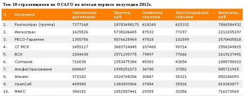 В целом выплаты по ОСАГО за шесть месяцев 2012 года составили 27,617 млрд руб., что на 3% ниже аналогичного показателя прошлого года.