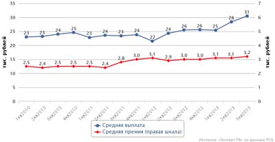 В исследовании «Эксперт РА» такая оценка дается. Так, согласно расчетам агентства, в случае сохранения тарифов и выплат на существующем уровне, комбинированная убыточность ОСАГО достигнет 100 % уже в 2014 году. При этом если предлагаемые в настоящее время поправки к Закону об ОСАГО, предполагающие увеличение лимитов выплат, будут приняты, комбинированная убыточность в том же году приблизится к 120 %.
