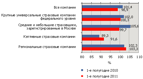 В подготовленном рейтинговым агентством «Эксперт РА» исследовании «Бенчмарки страховых компаний в 1-ом полугодии 2011 года: проекция роста» говорится о снижении усредненного комбинированного коэффициента убыточности: впервые с начала кризиса он упал ниже 100% (до 98,9% в среднем по рынку). Во многих случаях это снижение можно считать техническим и даже опасным (уменьшение показателя убыточности может быть следствием недорезервирования – формирования заниженных РНП, считают аналитики агентства.